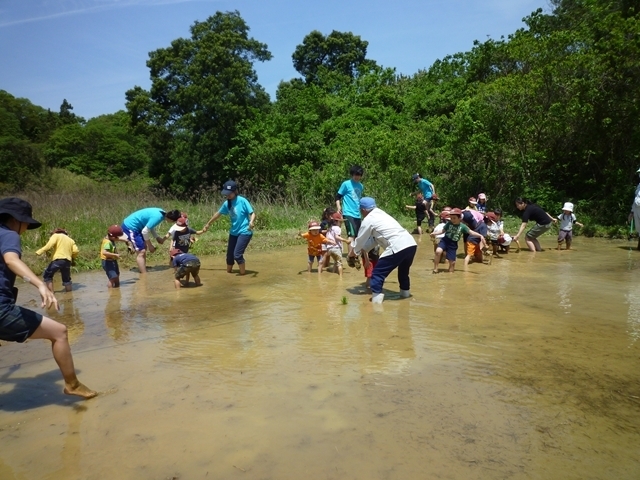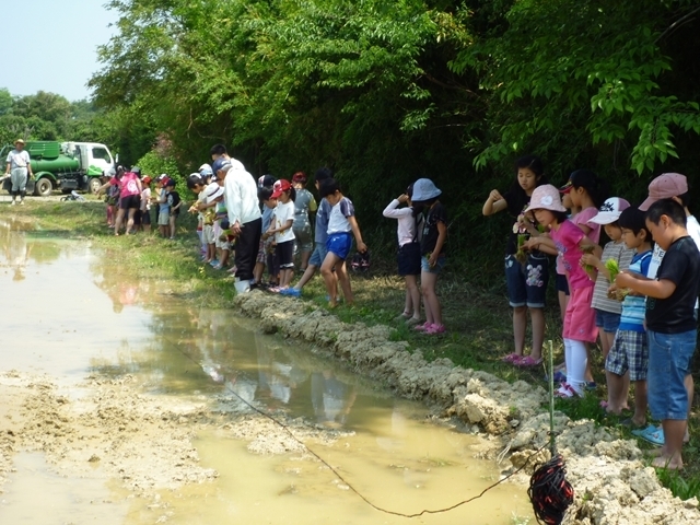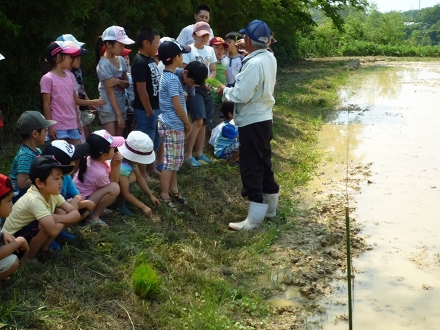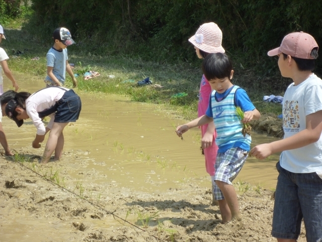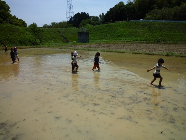 田植えが終わった後はカエルを追いかけて遊んでいました!(^^)!