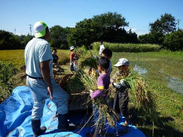 10日日曜日は日本冒険教育協会のみなさんがジョイフルファーム鵜の池内の田んぼで育った稲の稲刈り体験をしましたU^ェ^U