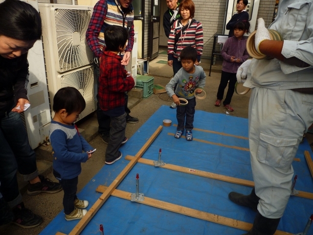 一番遠くに輪を入れた人は毎年恒例、中日ドラゴンズの選手のサインボールが貰えます。