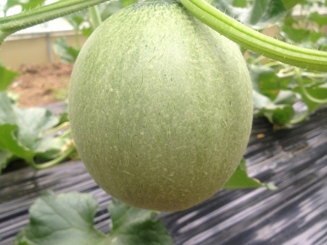 今日、メロンのハウスを見に行ったらメロンの表面に小さなヒビが入っていましたU^ェ^U