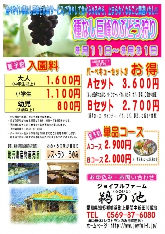 明日から種なし巨峰のぶどう狩りがオープンしますU^ェ^U