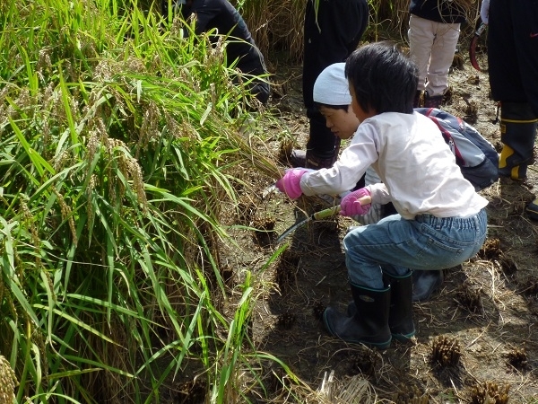 この日は2組のご家族が稲刈り体験、カレーライス作りを体験しました。