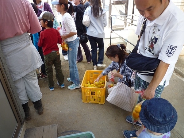 入園時にお土産袋を渡します。その袋にみかんを入れ1Kgピッタリだと、そのみかんと中日ドラゴンズグッズをプレゼント!!!
