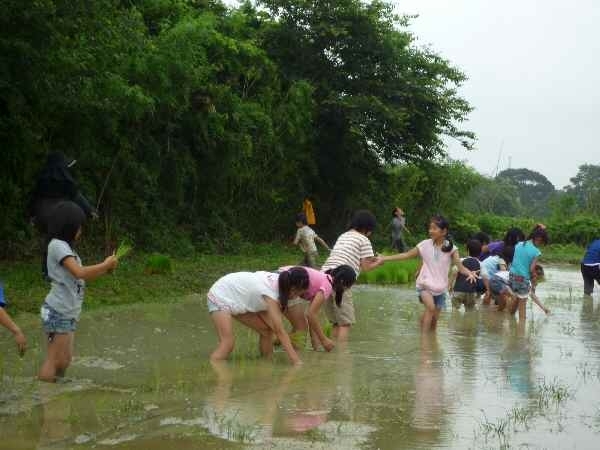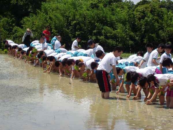 今日は日本冒険教育協会の方々と子供たちが田植え体験をしました。