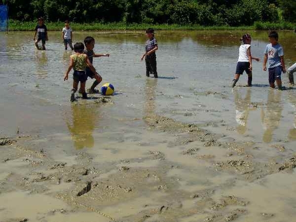 みんな陸と違って戸惑いつつも、どろんこになりながら一生懸命ボールを追いかけていました(*^_^*)